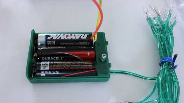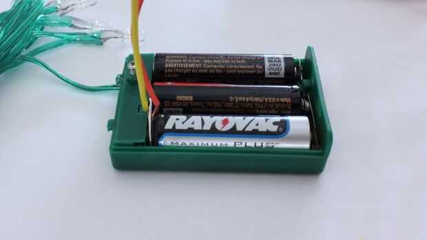 Las luces requieren más energía que puede dar salida a Arduino. Así tenemos que utilizar una fuente de energía externa. Decidí usar dos cadenas de LEDs con pilas. Para encender y apagar las luces, estoy usando un par de MOSFET de potencia IRF510. La compuerta de lo MOSFET está conectado al pin digital 6 en el protector de la onda. El perno de la fuente de lo MOSFET es conectado al pin de tierra en el protector de la onda. El perno de la fuente de lo MOSFET también está conectado al borne negativo de la batería de la luz. El perno de drenaje de lo MOSFET está conectado con el resorte de soporte de la batería. Estos son separados y aislados unos de otros mediante la inserción de un trozo de cartulina entre ellos. Con esta tarjeta en su lugar, sólo se puede completar el circuito de luz a través del transistor.