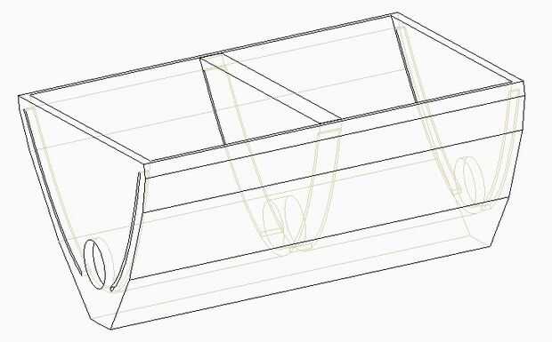 Dada la ecuación de la parábola derivada de mis experimentos MATLAB, usar ProE Wildfire para crear un canal parabólico superficie interna.  Ranuras que empareja la curva parabólica fueron también en los extremos y central de apoyo para formar la Junta de espejo a la forma apropiada.  Tenga en cuenta que estas capturas de pantalla no incluye algunos cosméticos cuenta fueron agregados más adelante (Meter para reducción de peso y la estética).  Una vez que la geometría fue creada, el archivo fue exportado como un STL con las opciones de resolución más altas (longitudes de cuerda pequeño y control de ángulo alto).