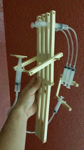 Si nunca ha dormido la mano o ido entumecido por alguna razón, sabes cómo lo difícil que es agarrar a nada sin un buen sentido del tacto. Ahora imagine cómo podrían sentirse amputados! Los científicos están trabajando en agregar un sentido del tacto a prótesis a través de varios medios diferentes, de muy alta tecnología. Decidí a sentarse y ver si podía calcular hacia fuera una manera de hacer lo mismo, pero de una manera barata, simple. Después de todo, no todo el mundo puede permitirse las prótesis arriba de la línea con la última tecnología. La solución que se me ocurrió fue utilizar líneas hidráulicas o neumáticas que coloque los dedos en un extremo y una llave en el otro. Los extremos de la abrazadera se arreglan en una manera para que cuando el soporte se une a una parte funcional del brazo y la prótesis agarra un objeto, la presión de la empuñadura también creará una sensación de ser quejado por el brazo, donde la llave se encuentra. Este Instructable es principalmente crear un modelo de prueba de concepto, que se puede utilizar para demostrar a otras personas cómo funcionará este sistema.