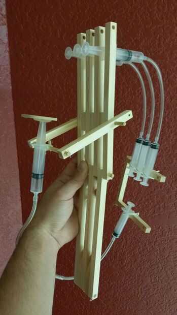 Como puede ver en las imágenes, una vez que se cierra la mano y los dedos hacen contacto, los émbolos en el apoyo extremo cerca en y ejercer presión sobre el brazo del usuario. Sin embargo, como mencioné antes, este modelo era más una prueba de concepto que una prótesis de trabajo real. Lo bueno es que realmente vivimos en una era de maravillas. Con el advenimiento de la impresión 3D, esto podría mejorarse significativamente. Por ejemplo, en lugar de tener tubos corriendo por todas partes, una prótesis puede diseñada e impreso con canales internos que se ejecutan a lo largo de su longitud. No sólo eso, pero los canales podrían ser más pequeño por lo que más podrían colocarse en los dedos y la palma y en el final de soporte, dando al usuario un "mayor resolución" sentido del tacto. Por lo tanto, si alguien por ahí tiene los recursos para mejorar en esto, adelante. Pero recuerde que el objetivo de esto no es una manera de hacer dinero, pero una forma económica de darle a las personas que faltan un poco de la humanidad que han perdido las extremidades. Espero sinceramente que con este Instructable, que puede ser logrado.