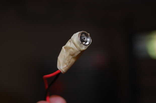 una vez que tenga el conector de sincronización, que usted querrá preparar soldadura para arriba y envolviéndola en un poco de cinta aislante... usé cinta adhesiva porque era todos los tuve pero eso es malo