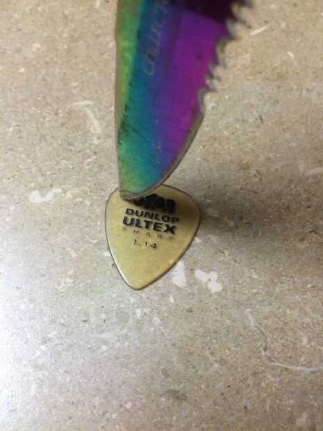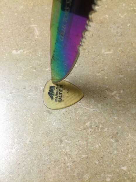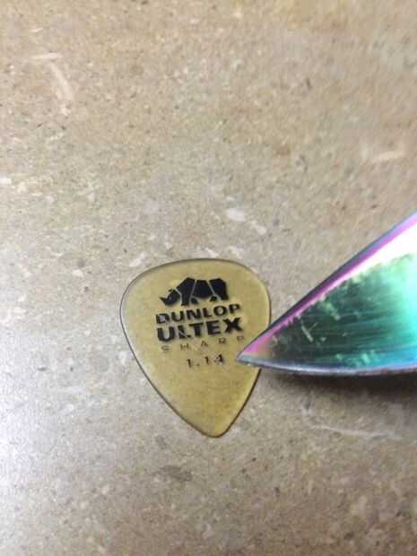 Usted querrá aplicar suficiente presión para raspar una línea en la selección. Tenga cuidado con picos delgados. Los que uso son muy gruesos. Para una selección más fina, sugiero talla a un lado. Para los más gruesos, tallar tanto.