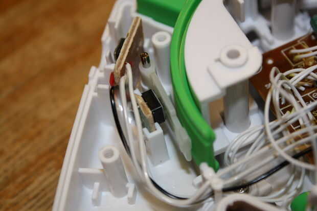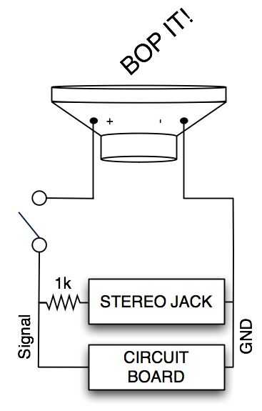 El cambio en el diagrama del circuito es realmente el interruptor del mecanismo de gritar que. El grito que mecanismo utiliza el deslizador verde para empujar una palanca que a su vez presiona un interruptor momentáneo (normalmente apagado). Mediante la reducción de su conexión a la placa de circuito, el interruptor puede utilizarse para cambiar cualquier cosa, en este caso sirve el papel visto en el papel en el esquema del circuito (activar/desactivar el altavoz primario).