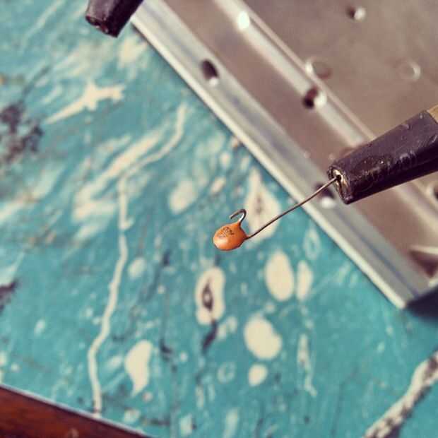 Tomar un condensador cerámico 47nF, cortar y doblar una de sus piernas en forma de U, tal que cuando se suelda el pin, la tapa se encuentra en la parte inferior (o puede soldar eso casquillo en todo lo que te gusta).