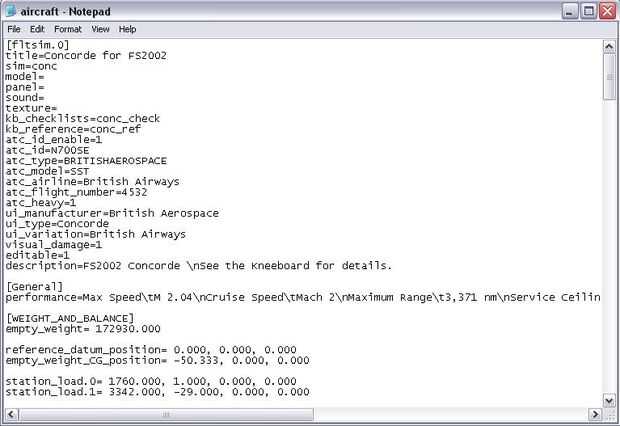 Desea revisar archivo aircraft.cfg de addon, el cual se puede abrir en Bloc de notas. El aircraft.cfg es el archivo que dice simulador de vuelo qué es el avión. Consulte las notas sobre el golpe de imagen para obtener más información.
