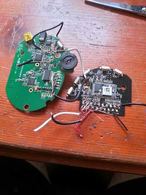 •Abra el auricular para exponer la placa de circuito en el interior (no quite los cables en el tablero de suben unos cuantos centímetros y cortan allí)