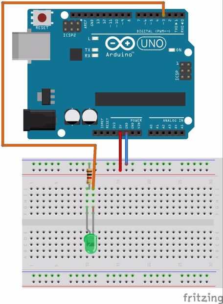 Su resistencia, un valor seguro es 1 k ohmios. Usted puede reducir el valor de la resistencia, si quieres un LED más brillante, pero tenga cuidado de conducir más de 40 mA de cualquier pin de tu Arduino ya que esto podría dañarlo. Un brillante es 20 mA. Para averiguar qué valor de resistencia que necesita para obtener 20 mA que fluye a través de su LED, use un multímetro para medir el voltaje en el LED mientras está en funcionamiento y conectado a una resistencia de 1 k. Tomar la tensión de alimentación (5 voltios), reste la caída de tensión medida a través de lo LED (varía en cualquier lugar de 1.8 a 3.6 V según el particular LED) y divida el resto por.02. La respuesta debe ser la resistencia mínima. Elegir la siguiente resistencia superior que tienes. Si no tienes un multímetro, puedes mirar la hoja de datos la tienes que ver cuál es la caída de tensión directa del LED. Si no tienes la hoja de datos, google la caída de tensión típica por el color de LED y elegir el valor más pequeño de la gama viene, seguro. Una vez más, la fórmula es