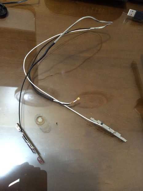 Tuve esta antenas WiFi atacada desde una portátil vieja, de mi instructables otros. El cable coaxial pequeño es básicamente el único que podría ser útil en este proyecto. Aunque las antenas son agradables y se podrían utilizar para bluetooth porque WiFi utilizan la frecuencia como bluetooth, que no tenía suficiente espacio para luego, en lugar de ello voy a utilizar solo el cable coaxial de construir mi propia antena.