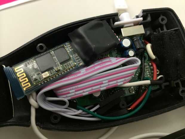 Poner las pilas en el otro lado del auricular y enciéndala. El LED rojo en el exterior de los auriculares que te diga que el auricular está recibiendo energía, y las luces en el módulo de Bluetooth que te diga que el módulo de Bluetooth funciona correctamente. Si no, inmediatamente la apague y compruebe el cableado.