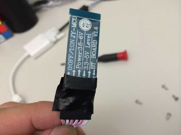 Estamos casi allí. El siguiente paso es aislar la Junta para prevenir cualquier cortos antes que meter todo en el caso. Cubre cualquiera de los componentes expuesto o cables en la HC-06 con cinta aislante. Revise las fotos, usted debe tener algo similar a mi configuración.