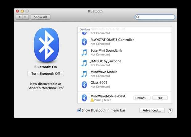 El nombre predeterminado de su módulo Bluetooth debe ser HC-06. He modificado el nombre de mi módulo de MindWaveMobile utilizando un Arduino. Revisa este tutorial para hacer eso.