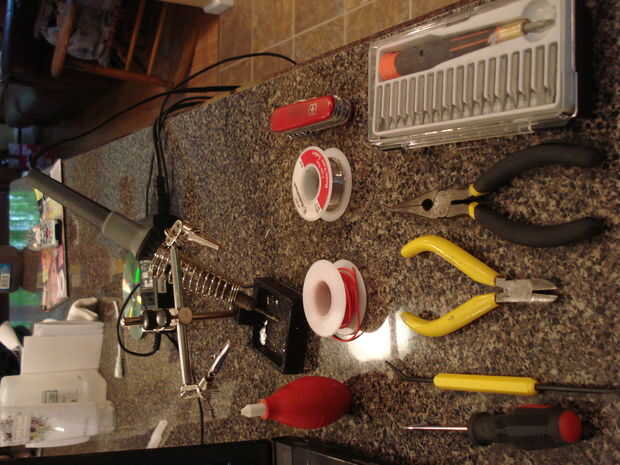 -Soldador. Para soldar (duh). Preparese para pagar cerca de $18 por un kit de inicio básico. (Probablemente debe venir con alguna soldadura demasiado. Si eres lo suficientemente bueno, no necesita más que lo que viene con él. intente y consiga uno con una punta muy pequeña, vamos a soldar en cuartos muy reducidos. Yo también, no supere los 20 vatios probablemente. Esto es una delicada que estamos trabajando. Recomiendo una estación con calor regulable. No tengo uno. Pero si esto es lo que haces, conseguir uno bueno.