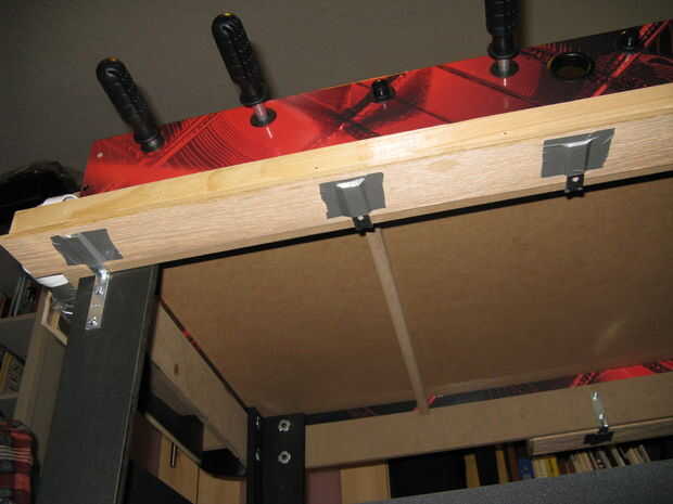 ... cinta adhesiva en. (sí, usted podría cemento en, o use tornillos muy cortos, pero la cinta funcionó para mí.)