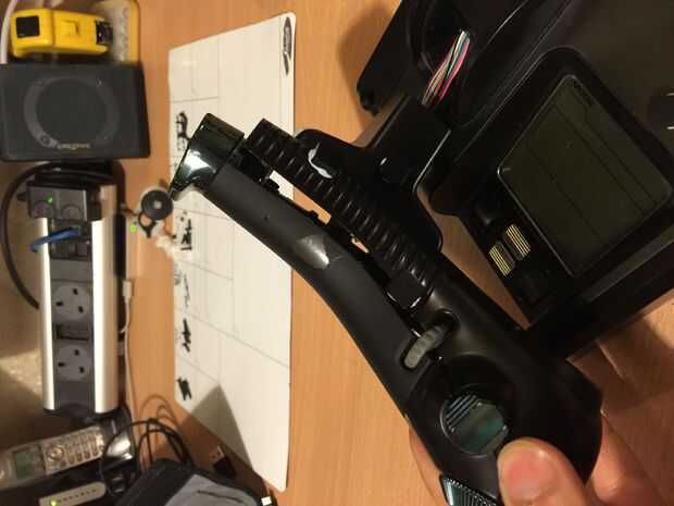 Deslice los cables a través de y usted será capaz de quitar los tornillos de la parte inferior de la manivela del acelerador y facilitar el mango aparte. Ahora estás listo para completar la posición de los botones.
