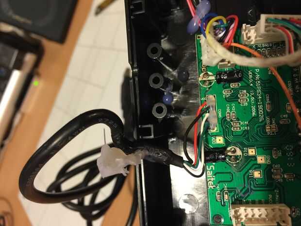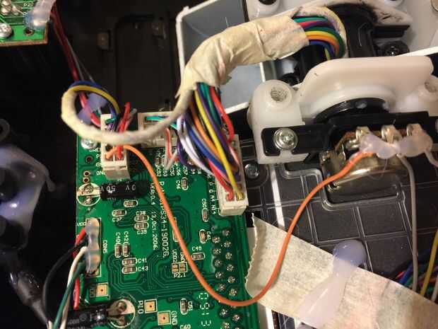 Desconecte los enchufes del cableado de la placa de circuito principal, tirando de los enchufes, no los cables! Una vez que se han publicado los cables, cuidadosamente despegar cualquier pegamento caliente si es necesario, puede aliviar hasta el pivote de la válvula reguladora y deslice los cables a través de darse cierto margen de maniobra. Entonces puede ver y quitar los cuatro tornillos que sujetan la palanca del acelerador en el pivote.