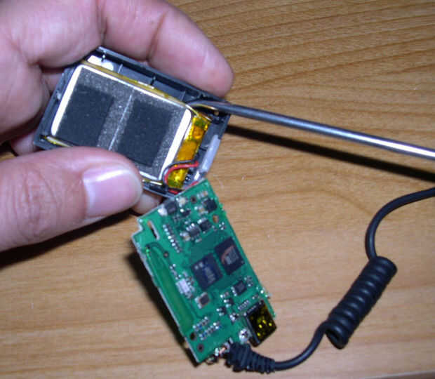 Retire con cuidado la batería de la parte posterior de la caja o simplemente quitar los dos cables en la placa de circuito. No necesita la batería ya que voy aprovechando la batería del iPod!