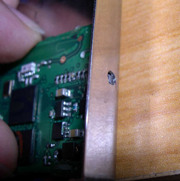 Vuelva a montar a la toma de auriculares y vuelva a instalar en la caja de metal. Enchufe el cable de cinta para auriculares en el.