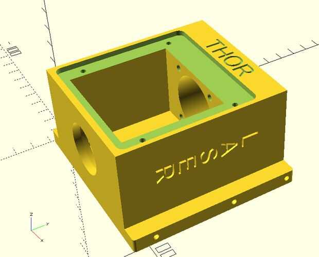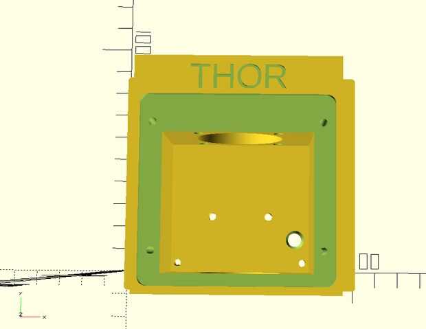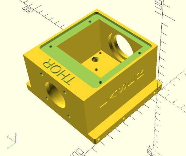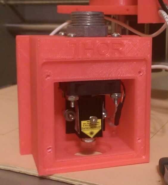 Este es el diseño final para el alojamiento de láser. Tiene agujeros de montaje para el láser y el ventilador, junto con ranuras empotradas para la admisión y de escape montaje de tuercas. Aquí se muestra el producto terminado (sin orificio de escape inferior instalado).