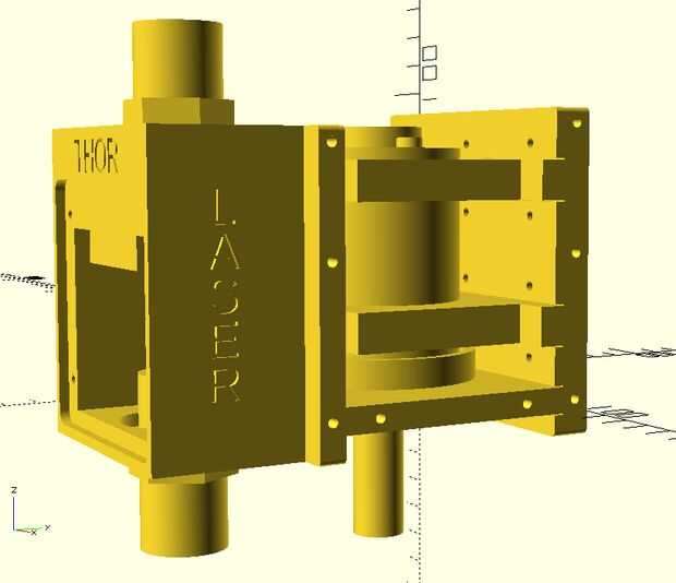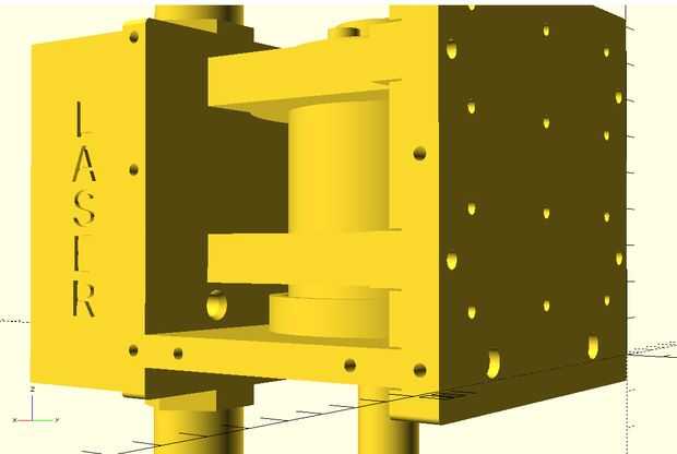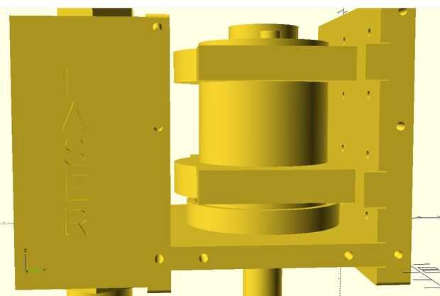 A continuación se que necesitaba para establecer la altura de la caja del láser con respecto a la caja del husillo. Para ello reunió a los dos modelos y ajustar la elevación del eje de la carcasa del láser hasta que alinea bien con la caja del husillo.