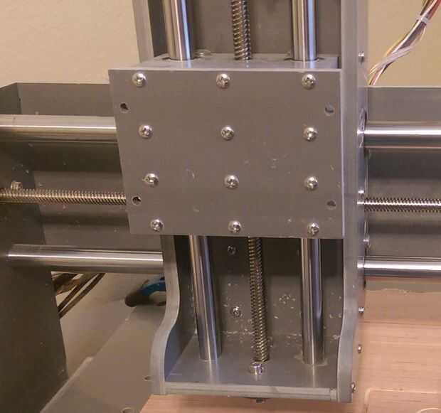 La superior muestra dos líneas verdes horizontales donde el eje de montaje de piezas se unen. Ya que iba a hacer un eje Monte también he añadido en una placa de montaje inferior para el husillo CnC (más información sobre por qué esto añadí un poco). Esta es la línea de fondo verde que ves en el modelo 3d.