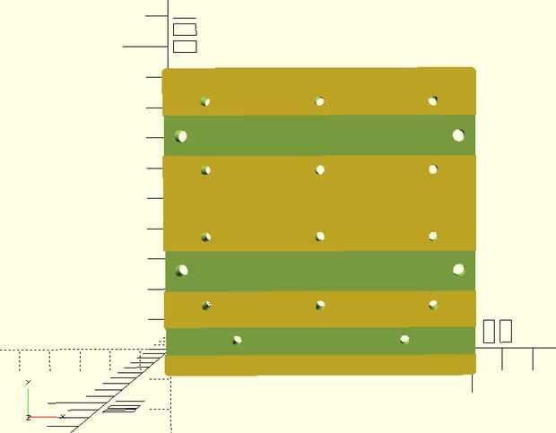Para empezar, he quitado la placa z original que fue montado el láser/eje a. Midió la agujeros de montaje y las dimensiones de la placa y luego modeló la placa en OpenSCAD. Con el fin de hacer que la placa lo suficientemente grande para acomodar el láser, aumenté las dimensiones de la placa.