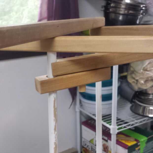 Una vez que el adhesivo ha curado colocar las patas cortas y girar la rejilla de secado en su lado para verificar que los imanes están llevando a cabo. Si la alineación es correcta las piernas cortas y largas deben permanecer en contacto.