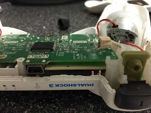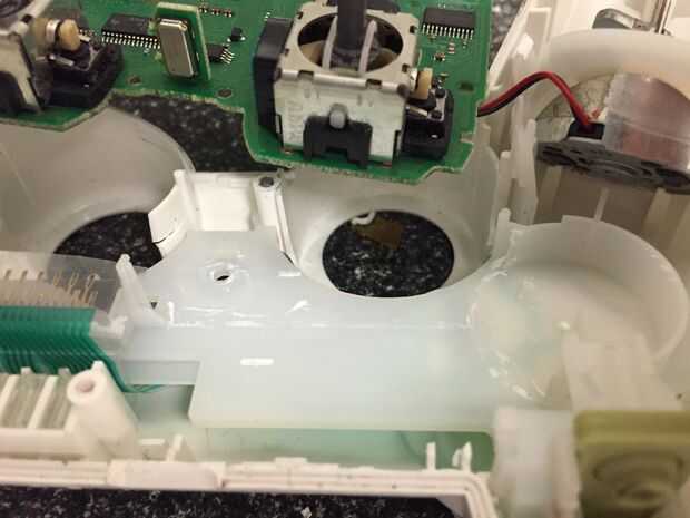 Luego, se necesita un cuchillo afilado para tirar a un material plástico de dentro del controlador. Sé que suena terrible, pero confía en mí, soy un médico! Bueno, si podría hacerlo - todo el mundo puede! Disn't medir la wile lo corte, pero usted puede conseguir la idea de las fotos. La razón de este procedimiento es para adaptarse a la carga junta entre las piezas de plástico frontales del controlador y la tarjeta controladora. Estará sentado a la izquierda ya que hay una matriz de contacto a la derecha. ¿Entenderás lo que quiero decir cuando se abre el regulador, allright?