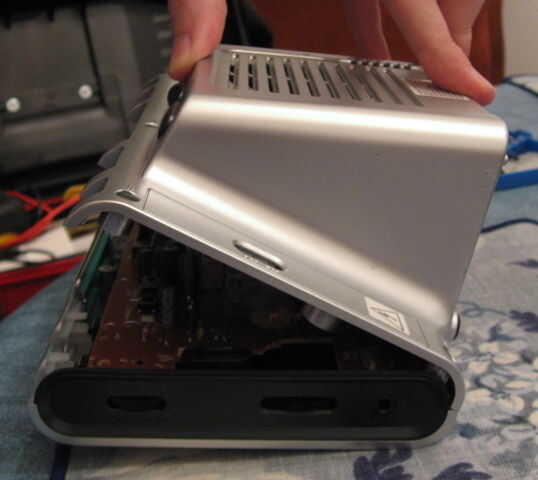 La cubierta será entonces bastante fácilmente bisagra abierta, gira ligeramente en sus fondo de seguros. Al llegar a este punto, puede levantar la tapa trasera lo suficiente para que el siguiente paso. Hay varios cables puente de la platina a los componentes a la contraportada: transformador, compartimiento de la batería y altavoz. Afortunadamente hay suficiente holgura en ellos nos deja hacer nuestro trabajo. Ser suave.