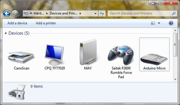 El Arduino Micro o Arduino Leonardo debería aparecer en la lista de dispositivos.