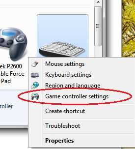 • Continuación, seleccione "configuración del controlador de juego" para el cuadro de diálogo de "Dispositivos de juego".