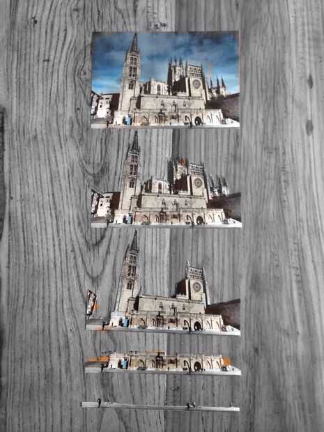Cuando estás cortando las capas, me resulta más fácil trabajar de las capas de primer plano (objetos de la foto más cercana a usted), a las capas de fondo (objetos en el fondo). En el caso de esta foto, empecé cortando el camino a pie y el pueblo frente a la foto como una capa. A continuación, cortar la primera sección de las escaleras y el balcón de la Catedral, incluyendo la manera de la caminata como la segunda capa y así sucesivamente.