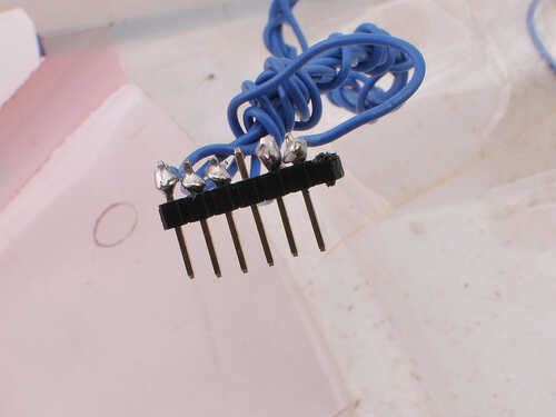 No importa qué posición están los otros alambres, usted puede incluso saltar un pin si quieres. Pero asegúrese de que el cable de cátodo común está en la posición más a la derecha. Este es un conector muy débil, le sugiero reforzar con pegamento caliente.