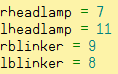 Encienda su transmisor de R/C y el receptor en el vehículo y golpeó F10. El primer LED que se ilumina se conecta a P7, el segundo está conectado a P8 y así sucesivamente. Escriba. Aquí está mi configuración del aspecto;