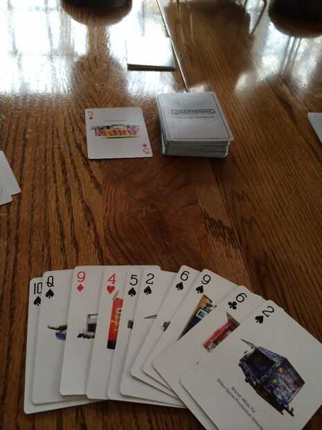 Tratar 10 tarjetas a cada persona. Cada persona sólo se ve en sus cartas. Voy a mostrarle las manos para que pueda ver cómo se juega. Ahora poner el resto de las tarjetas en el centro y gire a la tarjeta superior.