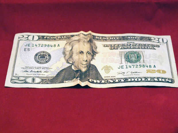 tirar los bordes izquierdos y derecho del proyecto de ley ligeramente hacia afuera, para estirar los pliegues un poco. Tenga cuidado de no tirar hasta ahora que los pliegues se hacen enderezar. Una vez que forma pliegue extiende M, girar a la cuenta y el retrato ahora sonríe o frunce el ceño dependiendo del ángulo en que está sosteniendo en.