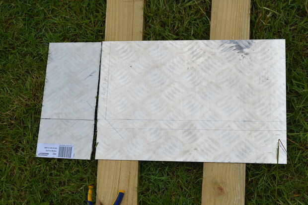 Medir y cortar el ángulo de aluminio a ser de unos 30 mm más corto que la espalda y los lados derecho, con 45 grados ángulos en los extremos donde se encuentran.
