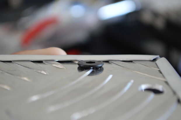Entonces todo lo tomó aparte y utiliza una broca de 9mm para hacer los agujeros en la placa de la banda de rodadura más grande. Los pernos utiliza han estallado cabezas, esto les permite sentarse más al ras que con un agujero de 6mm.