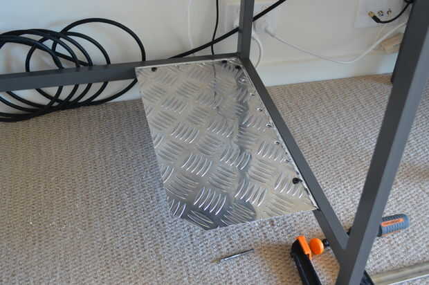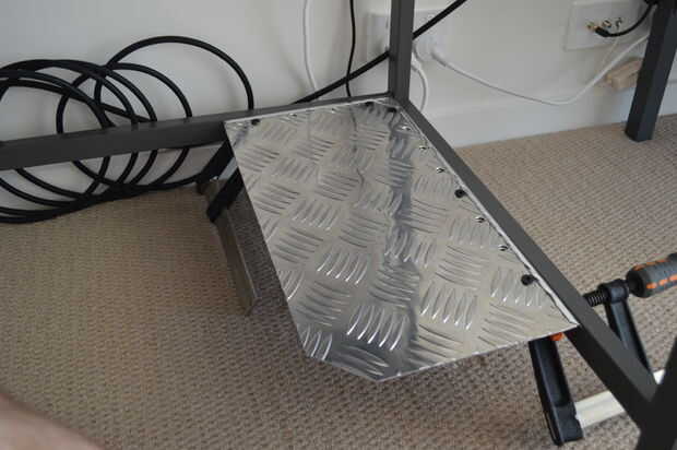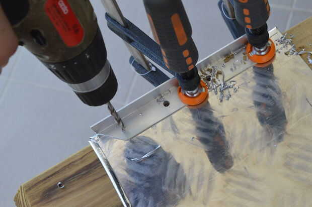 Taladrar los agujeros en el armazón de escritorio involucrado el angular se emperna a la placa de la pisada y entonces la sujeción a la estructura asegurándose de que todo fue al ras. Entonces pude marcar y perforar cada agujero en el chasis listo para la perforación.