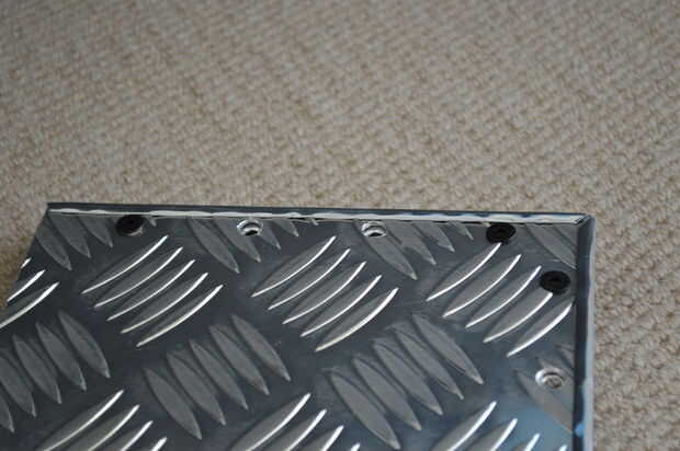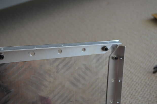 Luego sujeta la barra de ángulo a la placa de la banda de rodadura asegurándose que fue rasante y perforados a través de ambos ángulo de la barra y placa con una broca de 6mm de la pisada. He dejado la moldura sobre mientras hace esto para asegurarse de que todo se alinee al final.