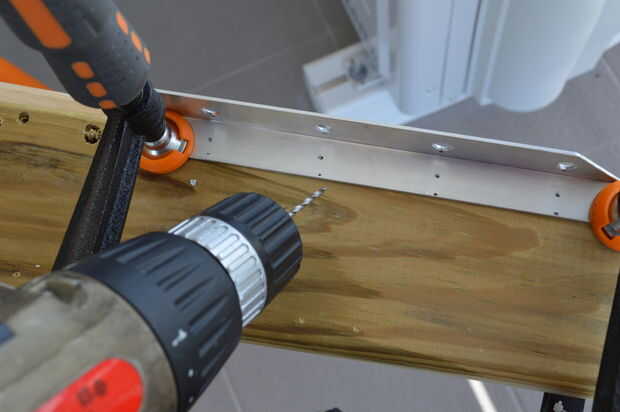 Hay dos filas de agujeros que corte. Uno para fijar la barra de ángulo al armazón de escritorio y fije el ángulo a la placa de la banda de rodadura.