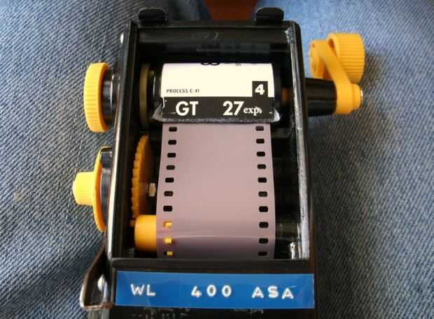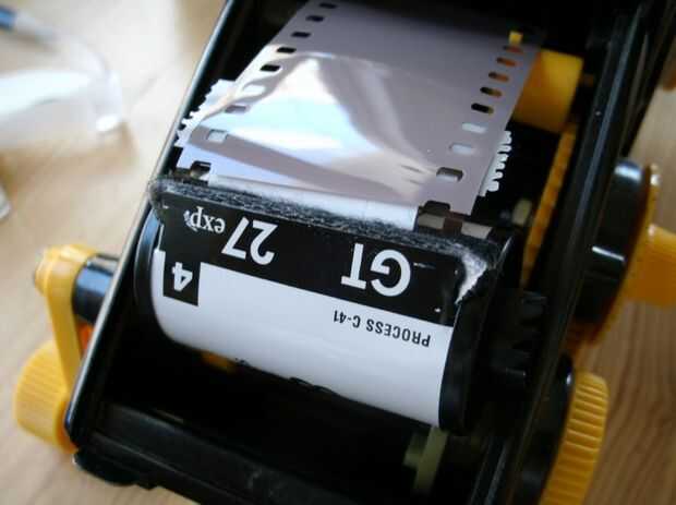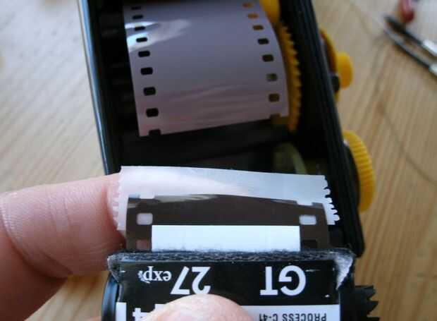 Tira de este tipo de cámara de película de un carrete de suministro, a través de la puerta donde está expuesta y en la película puede (bobinador). Un arreglo bonito como sus exposiciones están protegidos por el poder si se le cae la cámara y la cosa cae aparte. La toma puede película es exactamente igual que los comprar en la tienda salvo el carrete interno del diente de tiburón. Cuando llegue la película, pedir la puede regresar. Así, puede recargar la lata y utilizar su disponible otra vez. Usted puede hacer un regular película puede trabajar también, pero sólo si usted hacerse un patrón dentado áspero en el carrete interior con una herramienta de archivo o rotatorio. Funciona, pero utilizando la lata original es más fácil!1. tomar su película rescatado puede llegar de su acabadora de la foto y tu película de donantes a la cola corta a la izquierda por el técnico de la foto de la cinta. El frente y parte posterior de la cinta y ajuste con alguna cinta adhesiva para fluirá fácilmente en el poder. Estoy usando un cargador a granel aquí, pero podría usar cualquier lata de película como un donante. Usted sólo tendría que hacer el cambio final de la película en un cambio de bolsa o cuarto oscuro.
