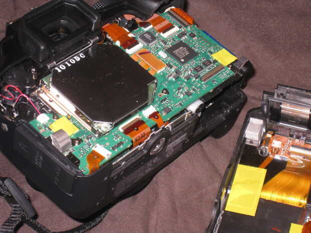 Una vez que se suelta con cuidado doblar hacia abajo hasta ver la un cinta cable te debe deshacer. Soltar el cable de cinta por los bancos la bisagra de 90 grados desde la parte inferior de la cámara a recto hacia fuera.