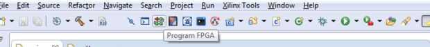 Orden para el programa a ejecutar en el tablero de la FPGA se debe programar con el bit archivo de antes. Para ello, haga click en el botón de programa FPGA. Este paso configura el LUTs y redes de alambre en el FPGA para aceptar el programa de MicroBlaze para controlar las tiras LED. Haga clic en el botón de programa FPGA en la barra de herramientas del SDK para programar la FPGA.