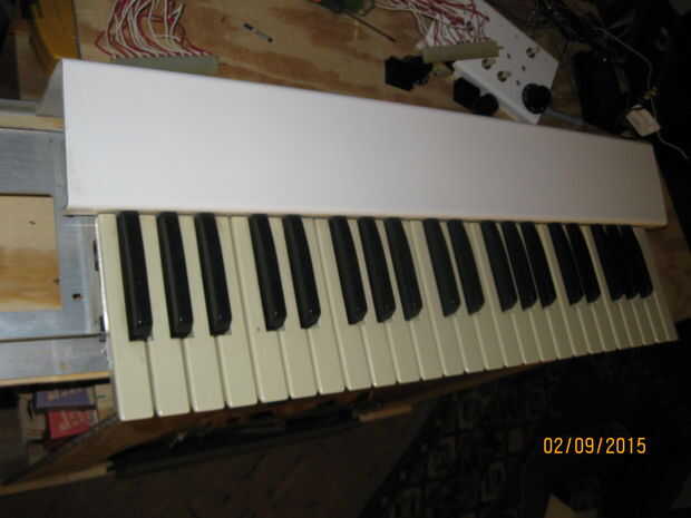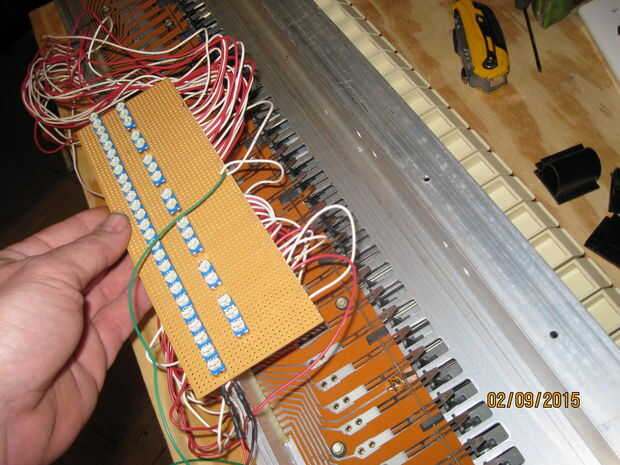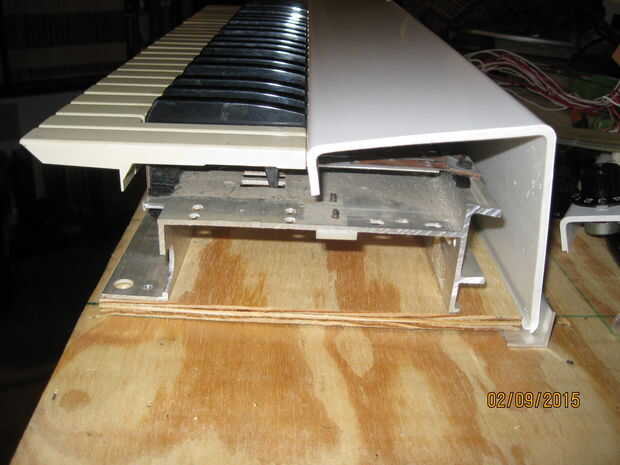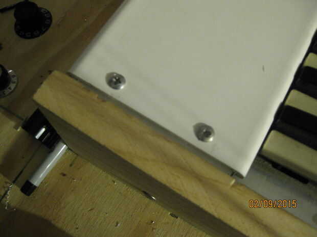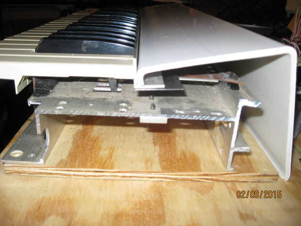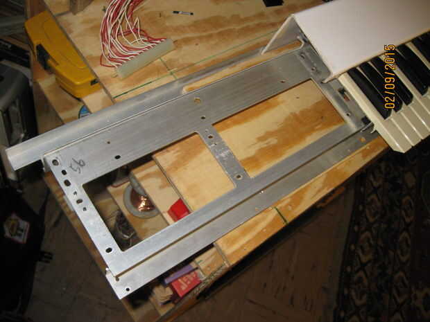 A continuación pongo la cubierta de PVC en el lugar donde se montaría. I marcados los agujeros de montaje en la cubierta de PVC, había retirado desde el synth y los perforados. Colocado de nuevo la cubierta de PVC y utiliza como guía para marcar la tapa los agujeros de los soportes de aluminio de montaje, luego les había perforado así.