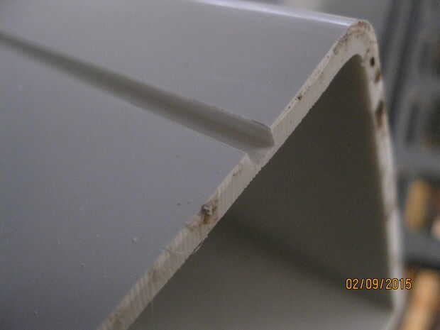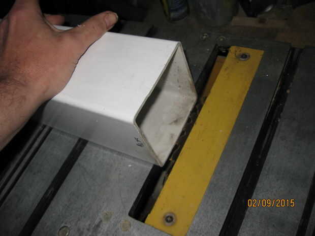 El primer paso fue medir y cortar el poste de PVC. Este es un material fácil de cortar pero hay un truco. Corte perpendicular al eje largo del post es fácil con una chuleta VI pero sierras más pequeñas pueden requerir el material a ser movido de un tirón y cortar dos veces. Corté la pieza a la longitud del teclado. Los siguiente cortes en el eje largo del post son difíciles. El tubo de PVC está bajo tensión. Si se intenta cortar a través de todo el camino con una sierra pellizcará el final dando por resultado un corte imperfecto. El truco para hacer este corte es para cortar una ranura en el PVC dejando suficiente material para evitar que derrumbarse y pellizcando la hoja. La punta fina de PVC que quedan en la parte inferior de la ranura se puede cortar y limpiar con un cuchillo. Después de fue cortado he comprobado el ajuste de la tapa y el juego interno para acomodar las tablas y componentes. Ahora es el momento para cortar las piezas de extremo.