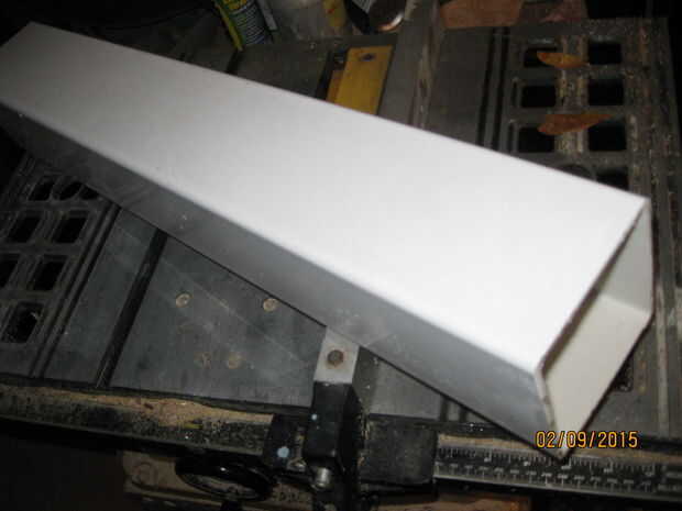 La siguiente preocupación fue cómo conectar la cubierta de PVC a la estructura. Usé algunos valores de ángulo de aluminio que tenía por ahí para hacer unos soportes. Medí el interior borde de PVC donde se reunió el pedazo de extremo y cortan dos de ellos.