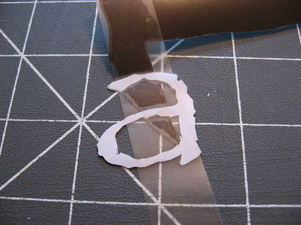 Esta pieza en particular tiene cuatro piezas, tres de la Cruz robusta y una letra "a". Observe el diseño irregular de la letra. Corte el básico "a" forma y cortar los detalles de la hierba.