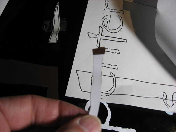 Se colocan las últimas piezas, como los demás, quitando un pedazo pequeño de la base, colocando la pieza, verificación de la posición contra la plantilla y eliminando el resto del forro. Estas fotos muestran este proceso de cerca.