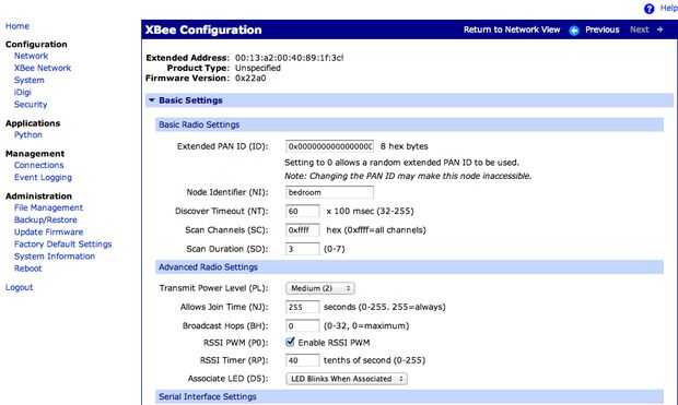 - Esperemos que ahora puedes ver tu XBee en la lista. Haga clic en el nodo para ir a la pantalla de configuración, donde puede cambiar el nombre del nodo (que es lo que aparecerá en la página web) y transmiten energía (usted puede bajar esto a menos que usted vive en una casa muy grande)