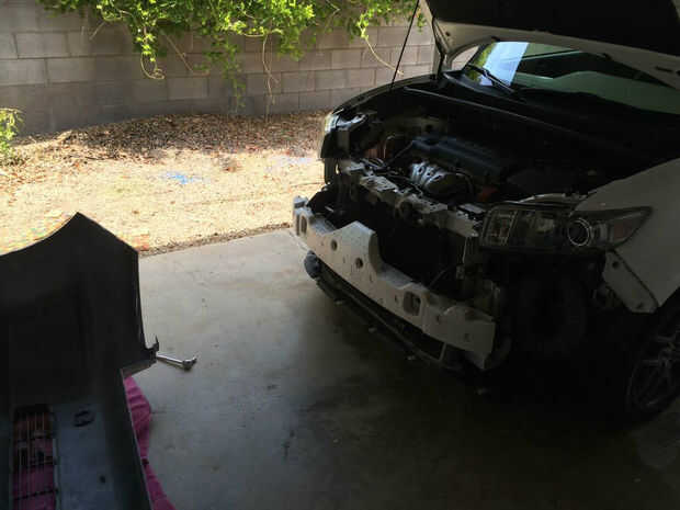 Ahora esta parte asume con éxito han creado y Unido las cadenas LED para el parachoques, y ahora está listo para volver a instalar el tope. Asegúrese de que usted tiene un montón de cable que viene de tu LED, especialmente desde el lado del pasajero LED, como el cable positivo tendrá que cruzar al otro lado del compartimiento del motor.